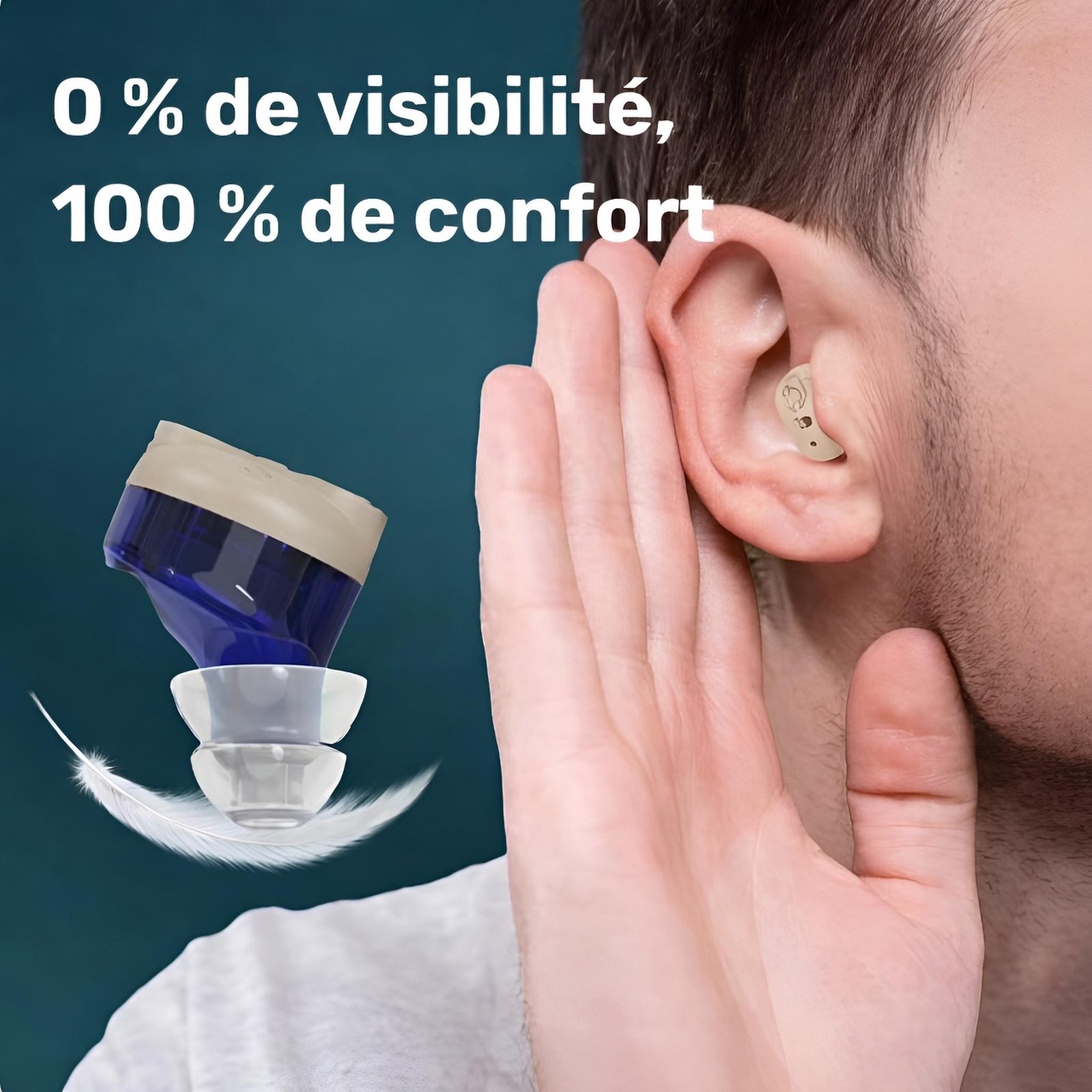 • Design invisible qui réduit la gêne psychologique liée au port d’une aide auditive